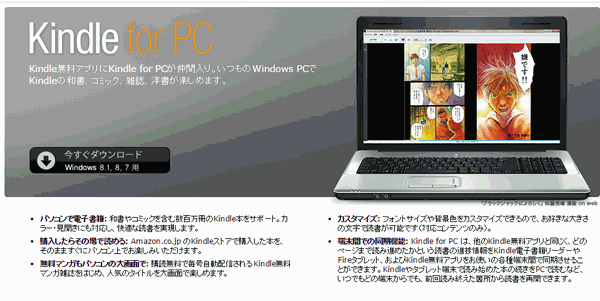 amazonの電子書籍がPCで読めるKindle電子書籍リーダーソフトです。 無料です。