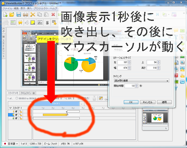 実はビューレットビルダー7では、吹出しを入れると自動的に