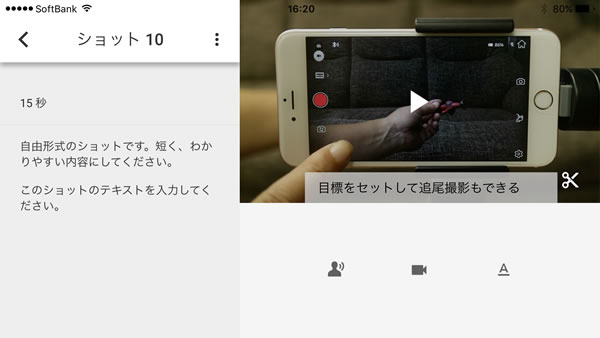 ここで1ショットに1つコメントをつけるようにします。コメントは20文字くらいが限界です。長い説明には動画は不向きです