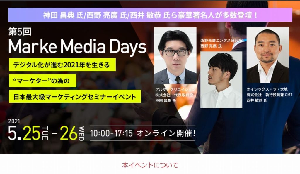 第5回MarkeMedia Daysに出展 5月25日 11:30~12:00登壇します