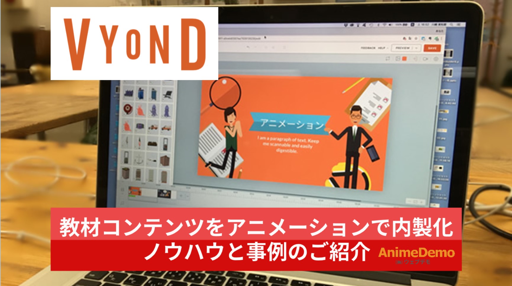 今回ご紹介するビジネスアニメ制作ツールVYONDはアニメーションを自分たちで作成できる画期的なクラウドツールです。今後増え続ける動画教材コンテンツに対して、コストを押さえ自社で作成するためのアイデアを皆様に解説いたします。