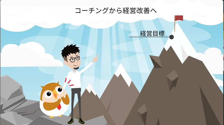 フクロウと一緒に高い山を目指す、これが経営者のコーチングのイメージです。そして、それだけではないのが「社長のフクロウ」という事が、動画で理解できるはずです。