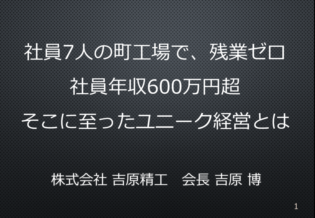 ワイヤーカット加工の工場を経営する吉原精工 従業員の年収は600万円以上で、残業はなく、週休2日 年間10日以上の有給休暇が3回以上という仕組みを10年以上かけて作り上げてこられました。