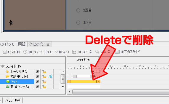 カラーハイライトもオブジェクトの一つです。削除する場合はタイムラインから(もしくはスライドから)選択し削除してください