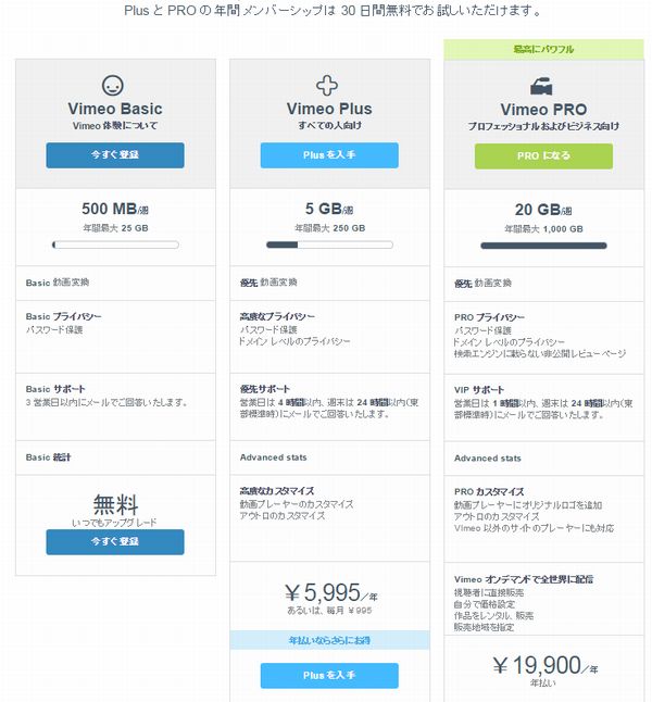 […] 公開したい。という方のための有料のウェブ動画サービスです。年額6000円(年額!)でデータUP量の制限は毎週20GBまで、全体の容量制限は特にありません。 vimeoを使って動画を配信する […]